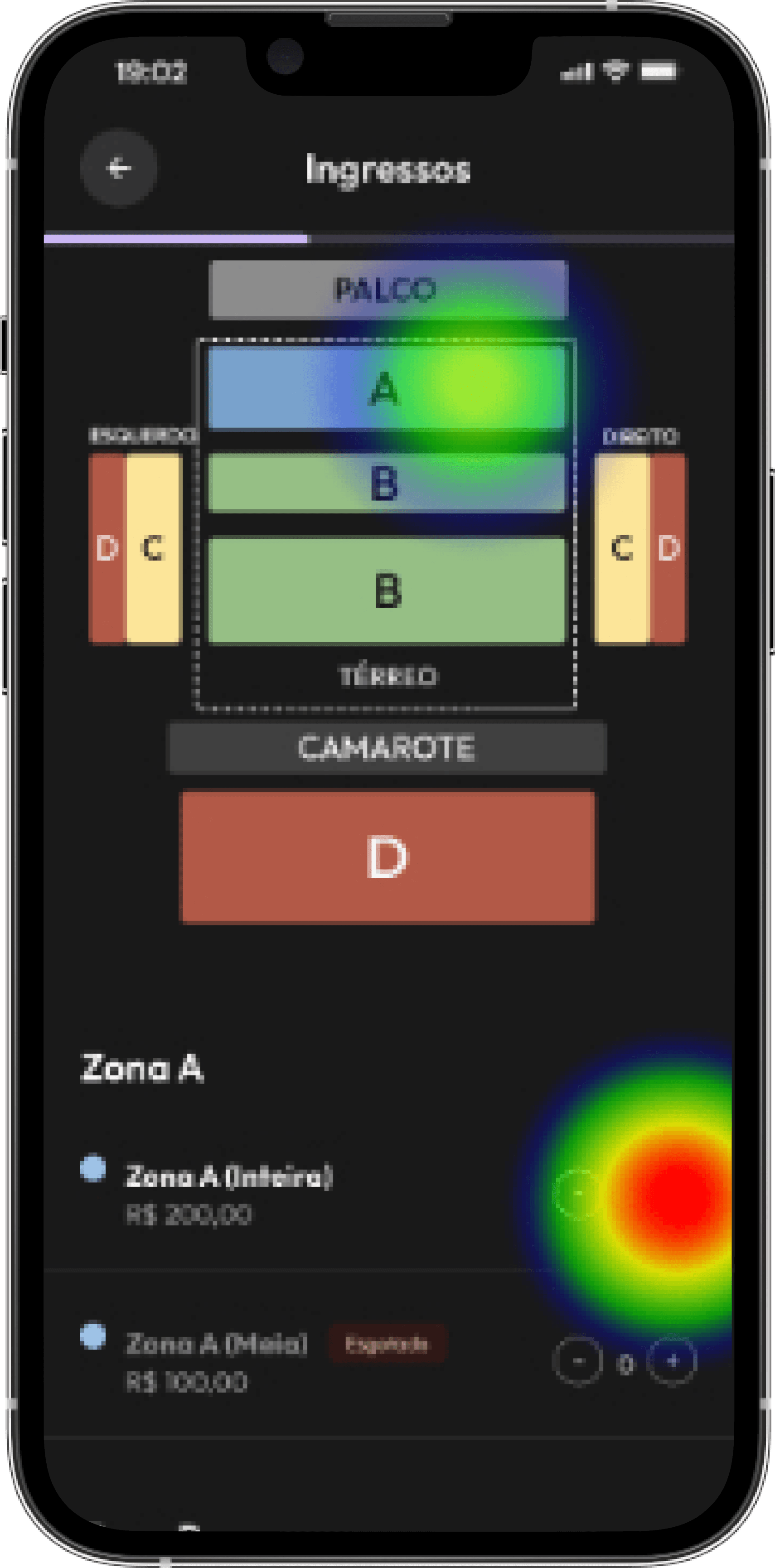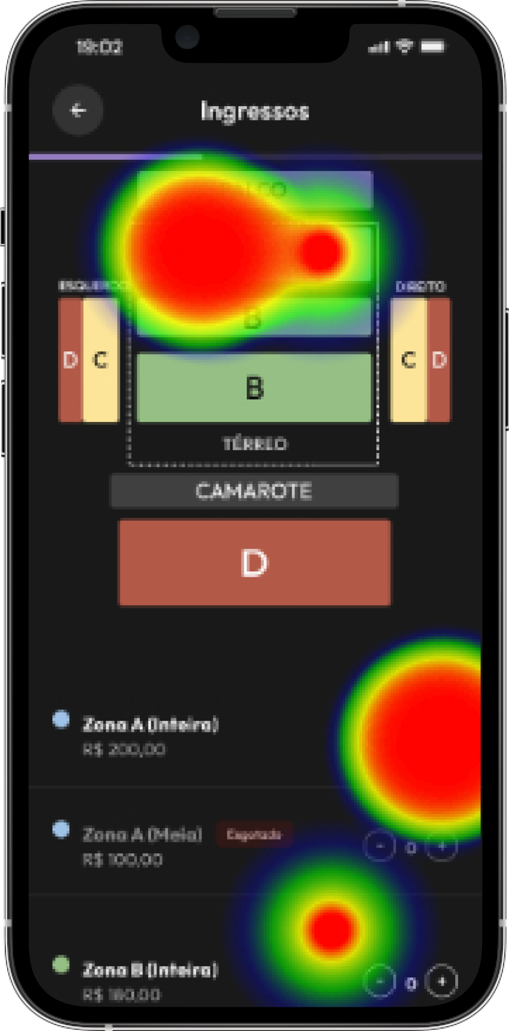 Escolha de ingressos: Alguns usuários clicavam na imagem ilustrativa dos setores achando que teria alguma ação, mas era um ponto cego;
