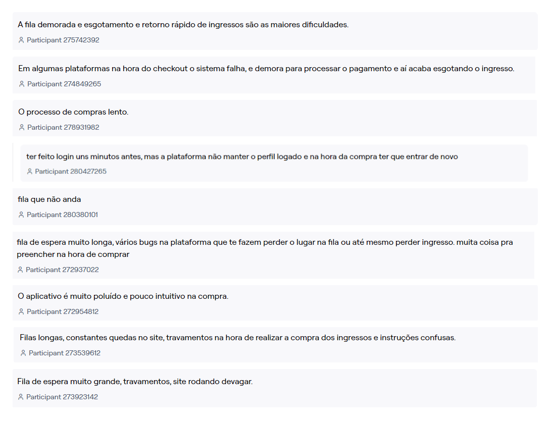 Em seguida, uma pergunta aberta sobre quais outras plataformas os usuários já utilizaram e quais foram as suas dificuldades e empecilhos - caso haviam - ao utilizar essas plataformas.