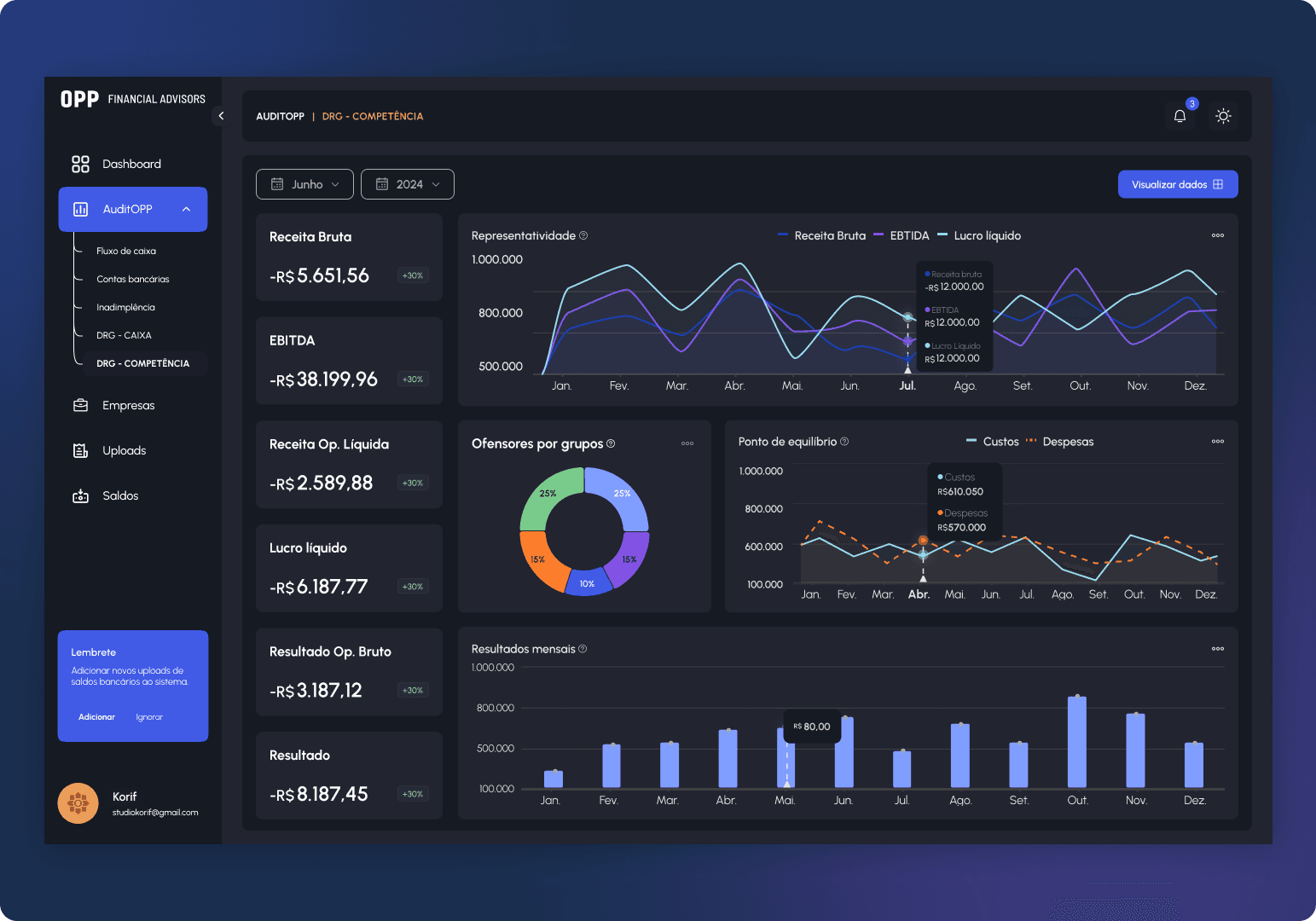 Oferecer uma visão macro e micro de números que fazem parte do setor financeiro da empresa;